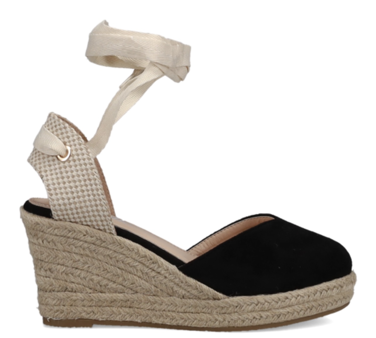 - Μαύρη εσπαντρίγια μεσαίου ύψους, σε σουέντ υφή.