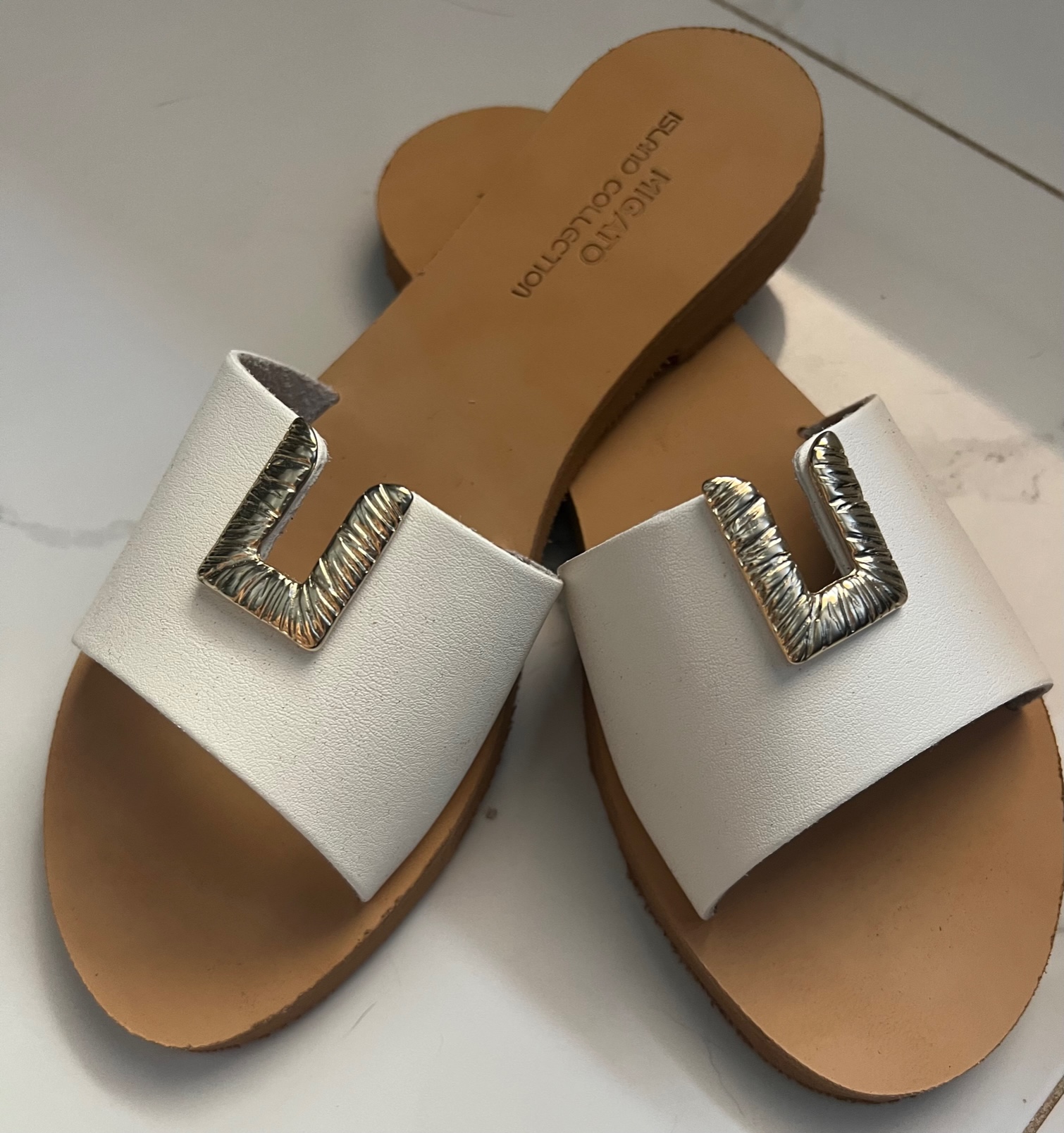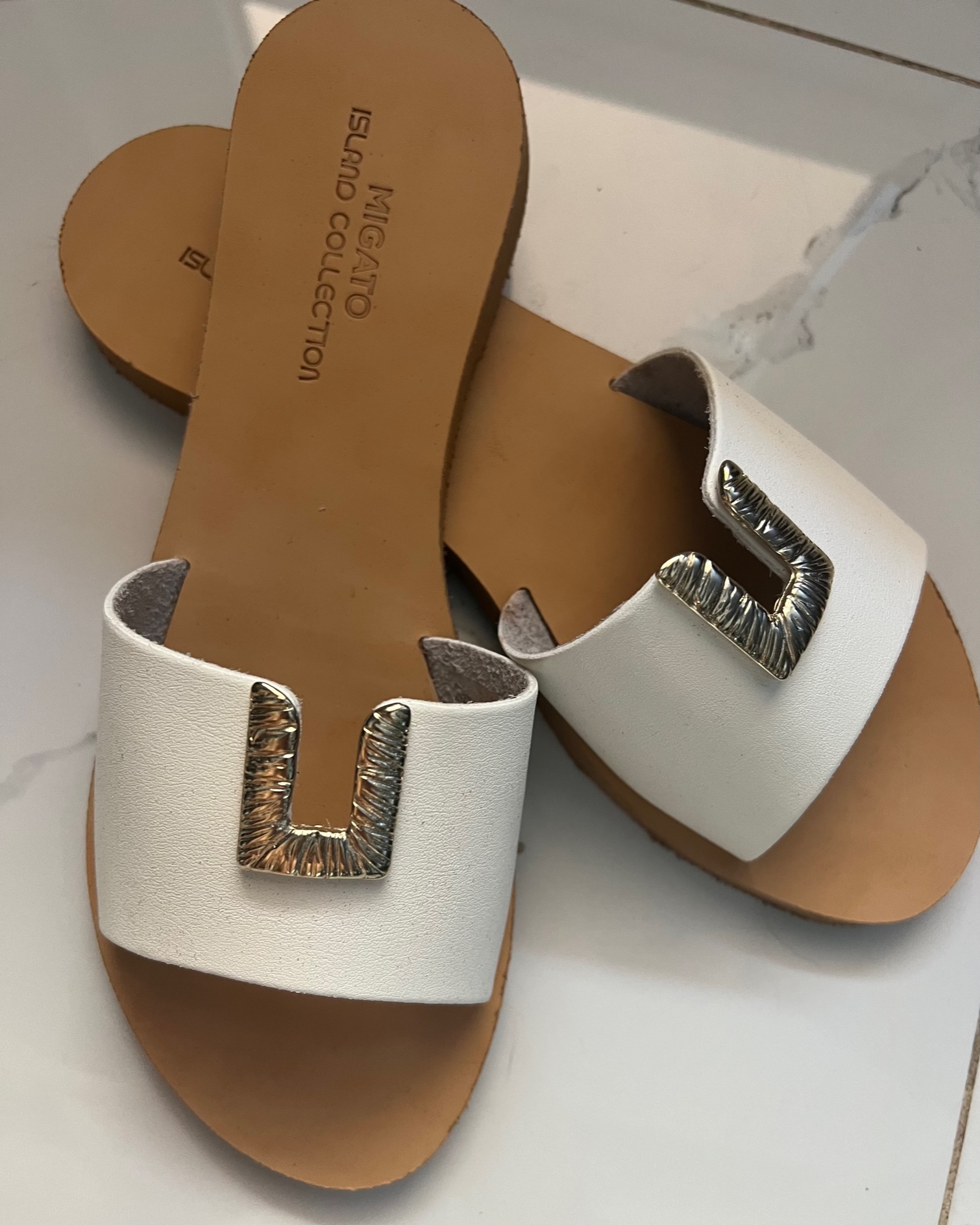 - Μαύρο ίσιο σανδάλι με διακοσμητική αγκράφα