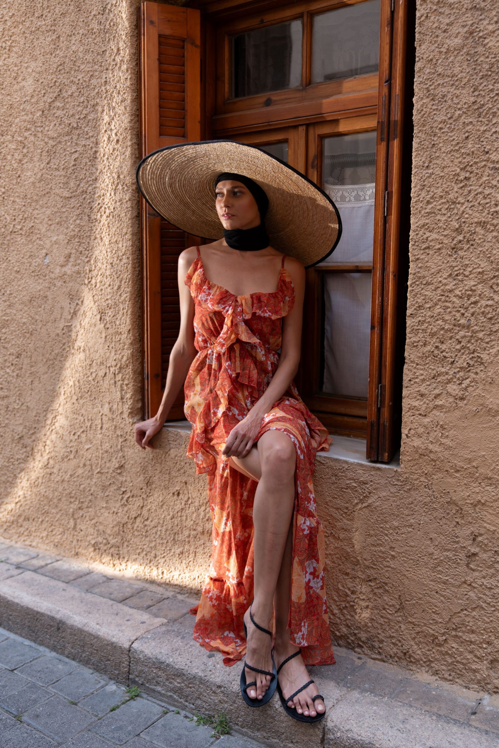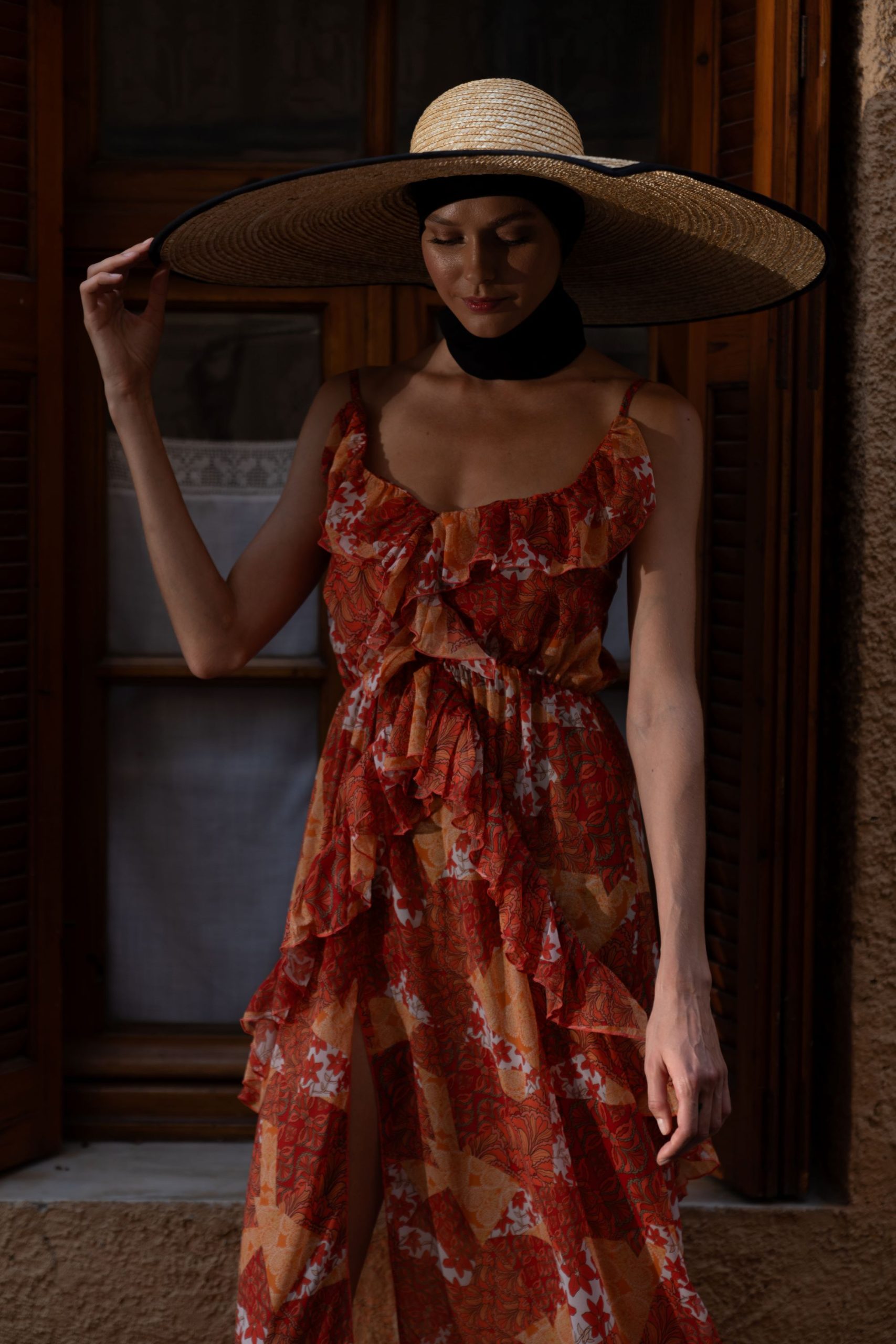 - Μάξι αμάνικο φόρεμα με διακοσμητικά βολάν περιμετρικά και σκίσιμο στο πλάι. Έχει λάστιχο στην μέση για να προσαρμόζεται τέλεια σε κάθε σωματότυπο.